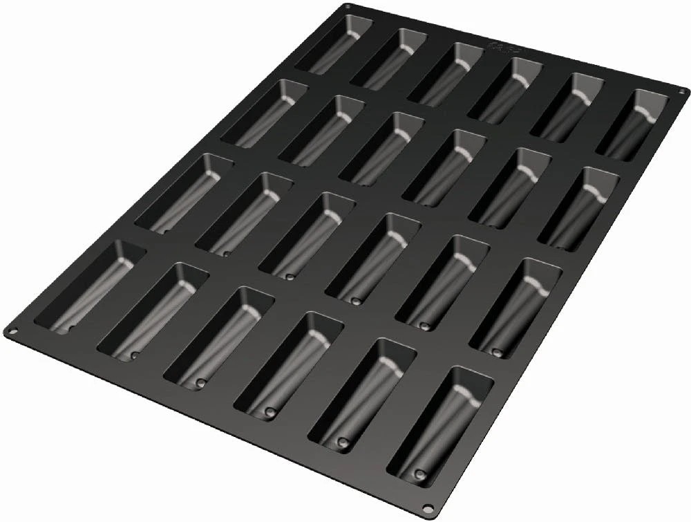 Diese Silikonbackform ist geeignet von -60 bis +230°C und kann in Backöfen, Mikrowellen und Gefrierschränken verwendet werden. ++ Ausführung: Fantasy 14 ++ Maße: 400 x 600 mm ++ Nutzen: 24 (119 x 36 mm) ++ Höhe: 34 mm ++ Volumen: 103 ml/Nutzen