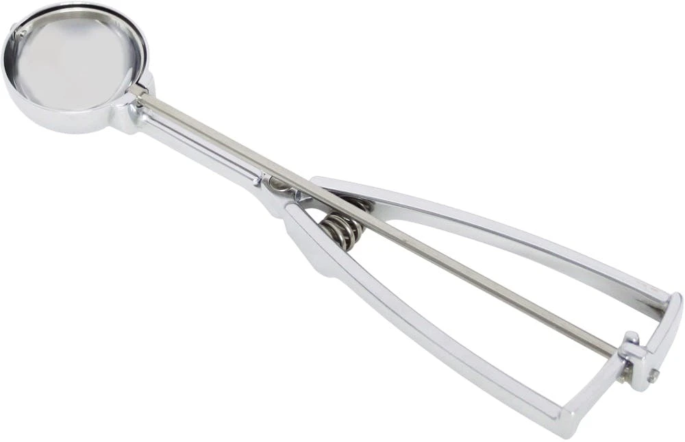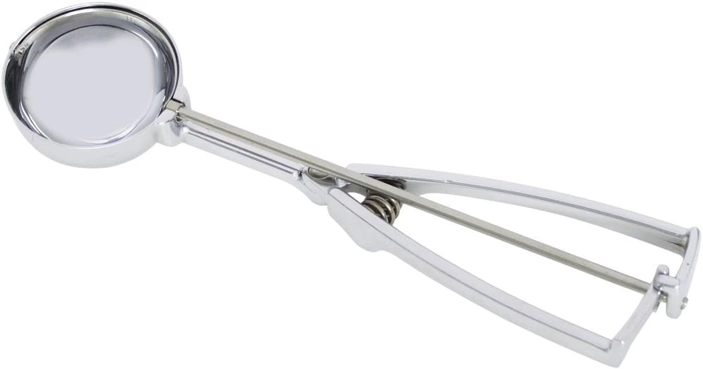Standard Eisportionierer aus Edelstahl mit Griff aus massivem Messing, verchromt.
